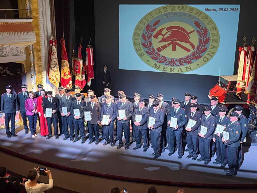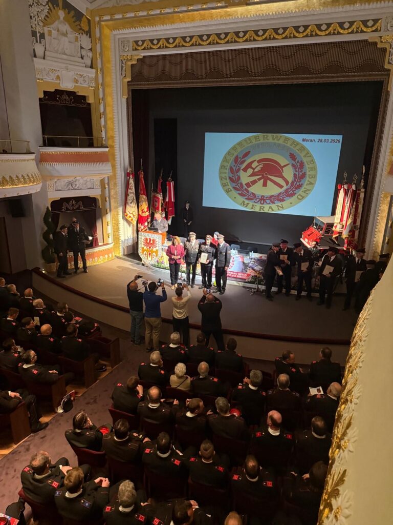 Am Samstag den 28. März 2026 fand die Bezirkstagung des Feuerwehrbezirkes Meran statt. Austragungsort war dieses Mal die Stadt Meran, woraufhin die Feuerwehren des Bezirkes sich im alten Stadttheater eintrafen. Neben den zahlreichen Grußworten der Ehrengäste, unter anderem dem Feuerwehrpräsidenten Martin Künig, Merans Bürgermeisterin Katharina Zeller, Landesrätin Rosmarie Pamer, Bezirksfeuerwehrpräsident Matthias Gamper, sowie Bezirksinspektor Alex Paternolli, gab es zahlreiche Informationen zum vergangenen Jahr.