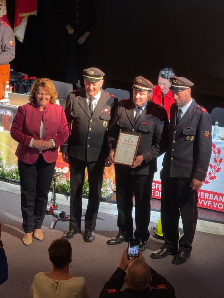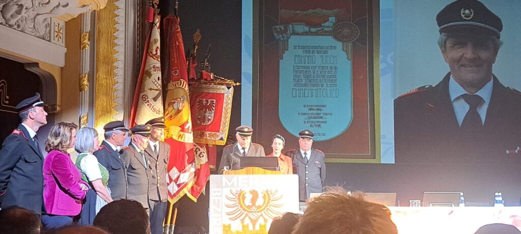 Weiters gilt es, die Ehrenmitgliedschaft unseres Altkommandanten und Alt-Bezirkspräsidenten Erhard Zuech zu erwähnen. Dieser ist nach wie vor aktives Mitglied der Feuerwehr Lana und blickt auf eine lange Karriere als Kommandant, Abschnittsinspektor und Bezirksfeuerwehrpräsident zurück. Nach den Neuwahlen im letzten Jahr verlieh ihm der Bezirk Meran im Zuge dieser Bezirksversammlung die Ehrenmitgliedschaft für seinen jahrelangen und treuen Dienst im Bezirk. Der Vorstand gratuliert Erhard zur herausragenden Auszeichnung und bedankt sich bei ihm für die vielen Jahre der engen Zusammenarbeit.