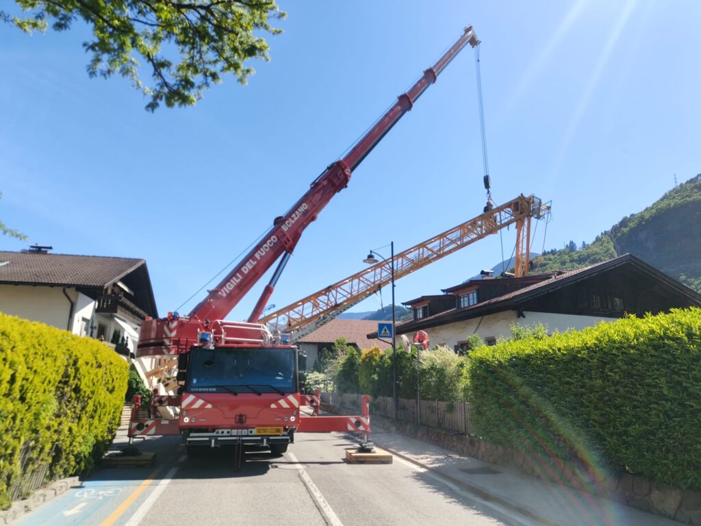 Umgehend sicherten die Feuerwehr und die Ortspolizei den Bereich weiträumig ab. Weitere Behörden und das Arbeitsinspektorat wurden hinzugerufen und aufgrund der Komplexität und Größe des Kranes im weiteren Verlauf die Berufsfeuerwehr Bozen mit dem Schwerlastkran und ein weiterer Kran eines privaten Unternehmens. Die Bergung gestaltete sich als äußerst schwierig und wurde behutsam in stundenlanger Arbeit durchgeführt und zog sich bis in die Abendstunden hin.