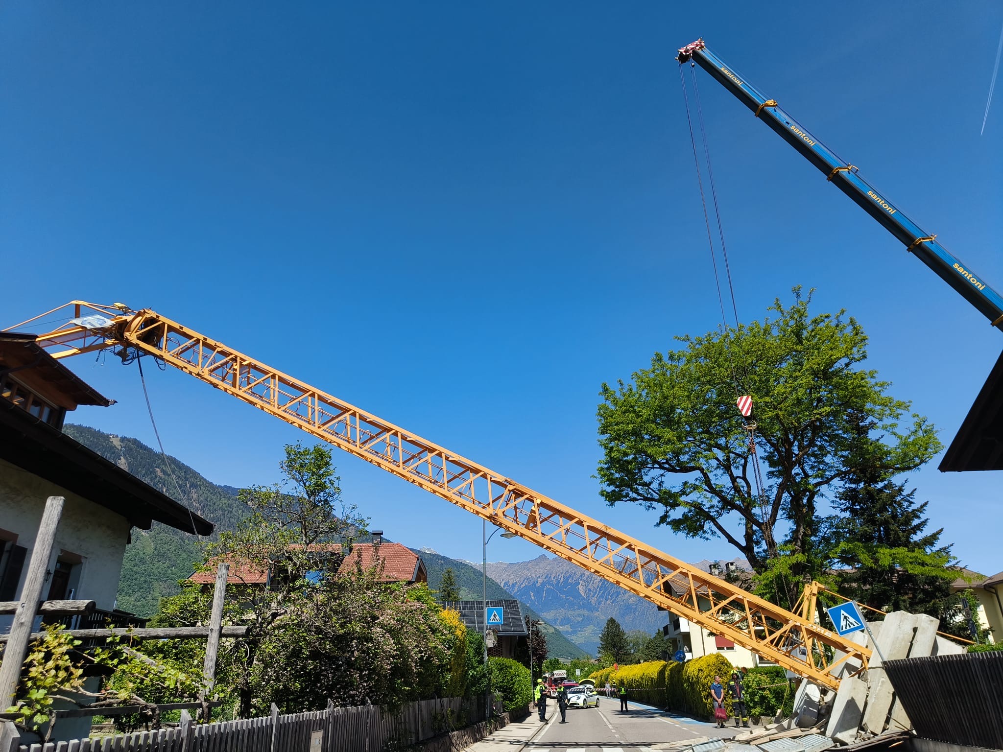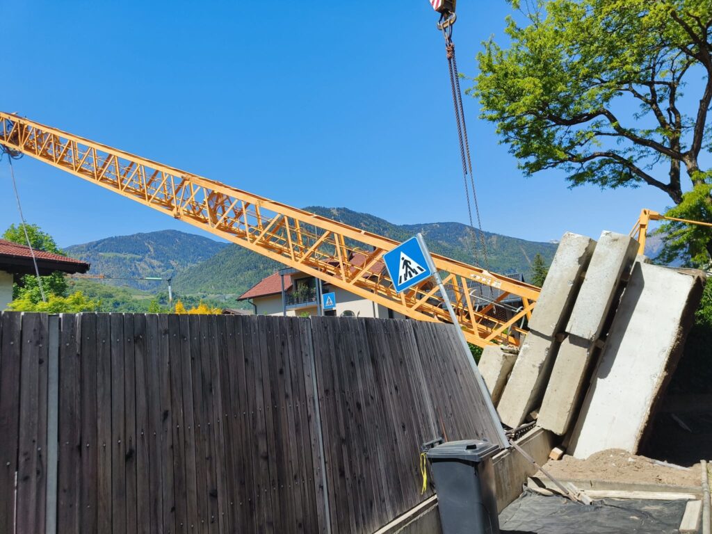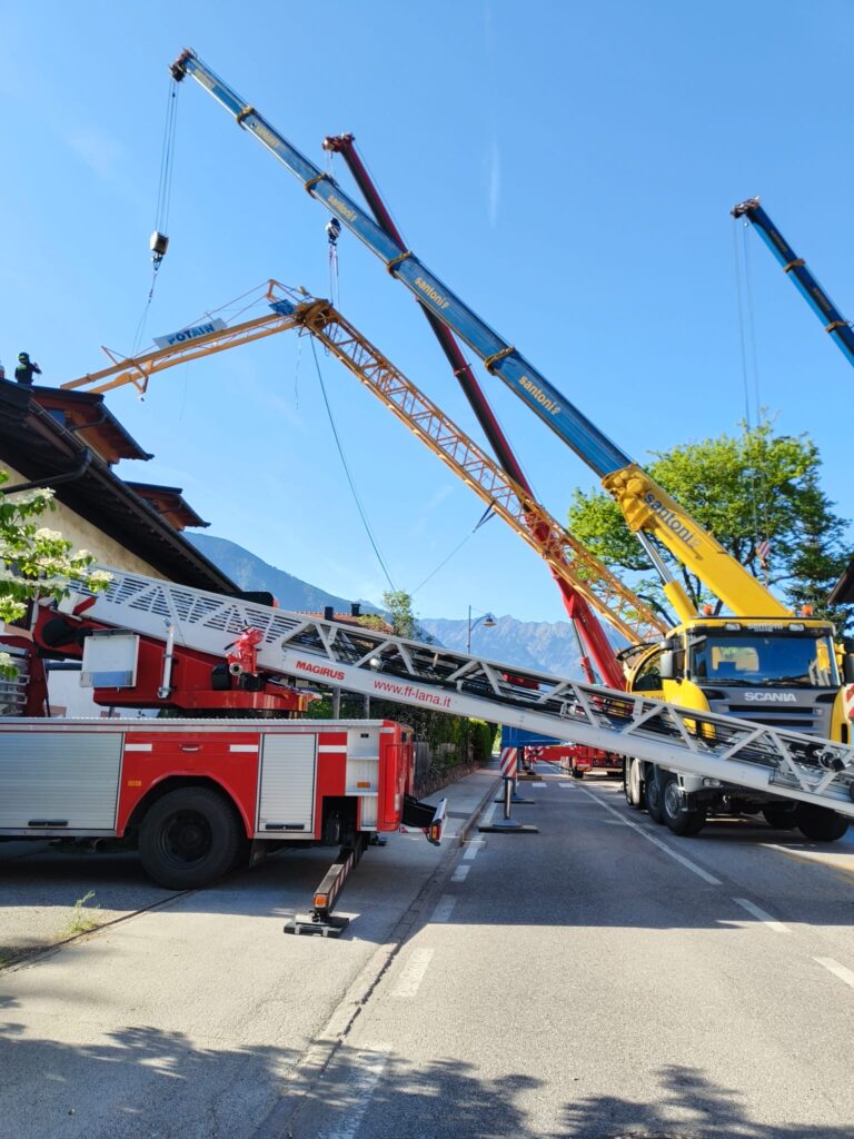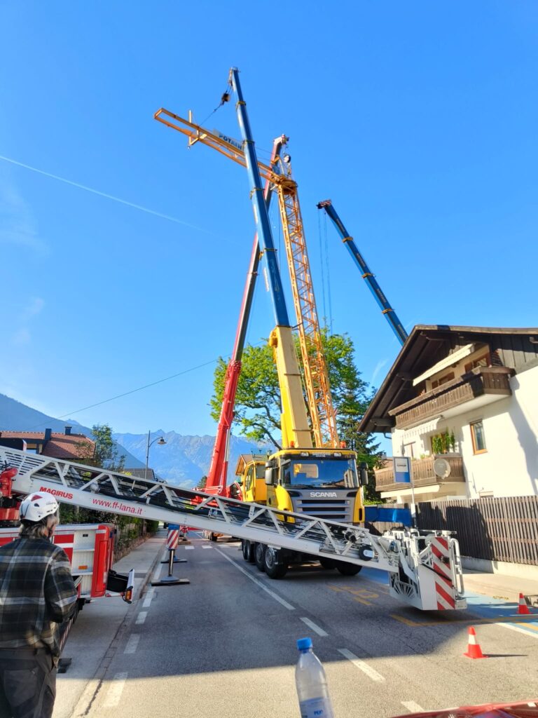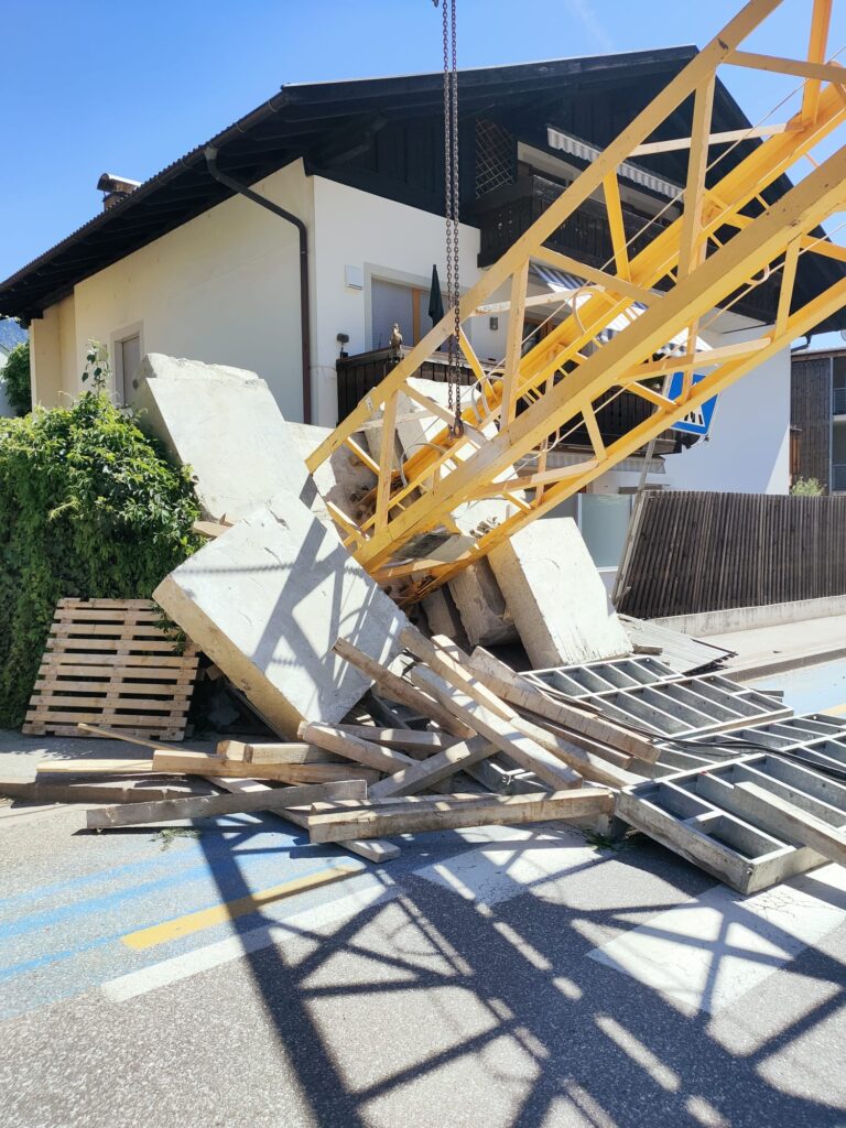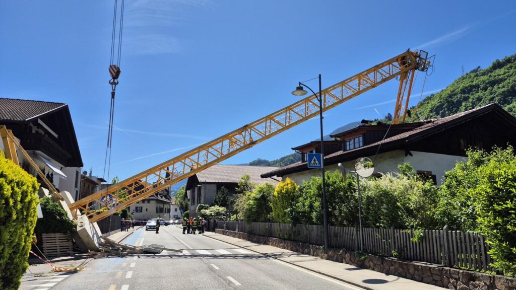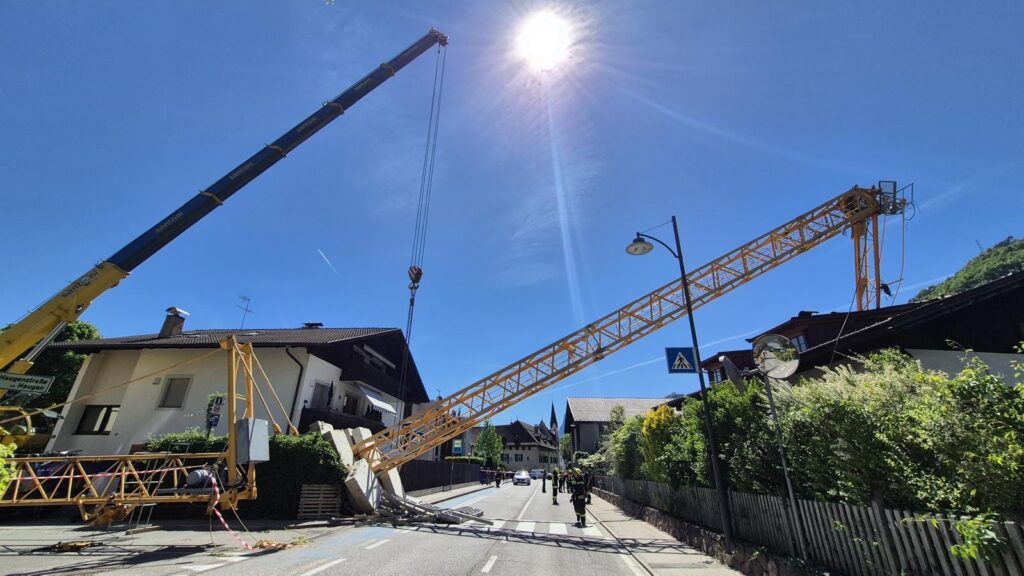 Am Freitag den 24. April 2026 stürzte zur Mittagszeit ein Turmdrehkran in der Treibgasse in Niederlana plötzlich um. Der Kran sollte gerade aufgestellt werden und kippte über die Treibgasse auf die gegenüberliegende Straßenseite auf das Dach eines Wohnhauses. Die Episode wurde von zwei unglaublichen Glücksfällen begleitet: zum Zeitpunkt des Umfallens befand sich ein Kranmonteur an der Kranspitze, welcher mitsamt dem Kran auf das Dach niederging. Er blieb nahezu unverletzt, was an ein Wunder grenzt. Ein weiteres Wunder: im Inneren des Gebäudes befand sich in der Dachgeschosswohnung eine junge Frau, welche nur um wenige Meter neben dem einschlagendem Kran stand und somit nicht getroffen wurde.