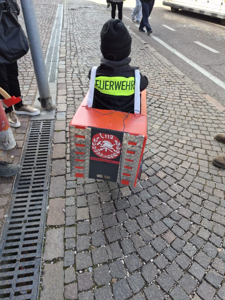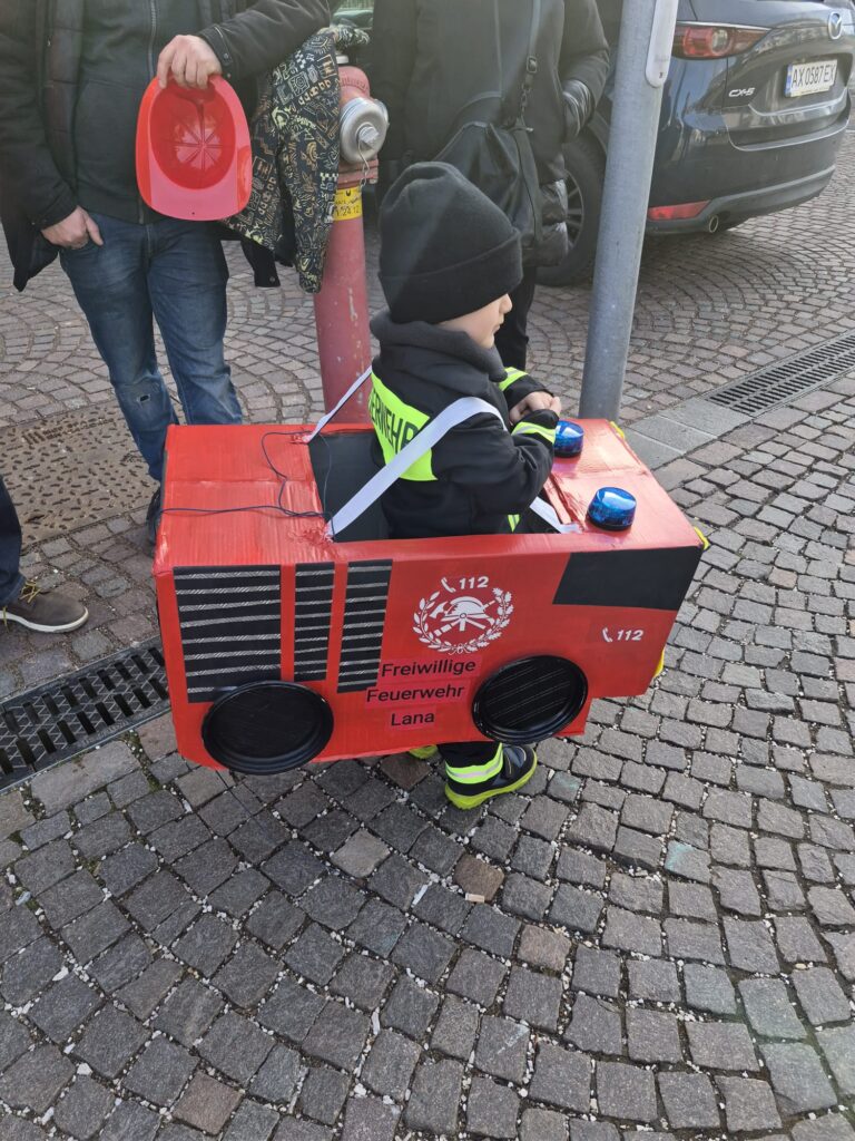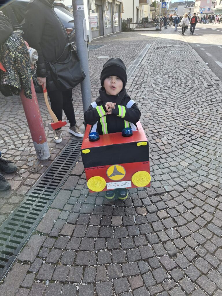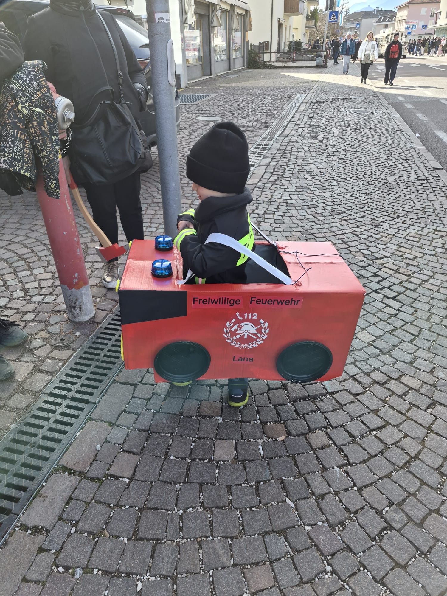 Da staunten wir nicht schlecht, als im Zuge der bereits beginnenden Faschingsumzüge im Land ein kleiner Junge mit einem Feuerwehrkostüm auftauchte. Gekleidet, natürlich in Feuerwehrmontur, vor allem aber ausgestattet mit einem Nachbau unseres Tanklöschfahrzeug 1, samt Rollläden und natürlich funktionierendem Blaulicht. Stolz der Mercedes-Stern an der Front und selbst das richtige Kennzeichen waren angebracht.