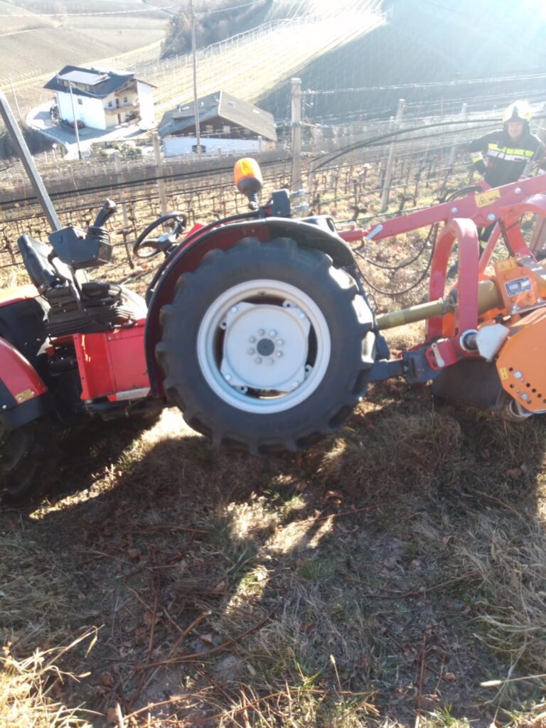 Am Sonntag den 10. Januar 2026 wurde die Feuerwehr Lana von einem Weinbauern zu einem Einsatz nach Unterackpfeif gerufen. Ein mit einem Mulcher bestückter Traktor war in den steilen Weinbergen teilweise umgekippt und drohte abzustürzen. Die Einsatzkräfte bahnten sich den schmalen und steilen Anfahrtsweg nach Unterackpfeif hoch und sicherten den verunglückten Traktor. Mittels Greifzug konnte er wieder auf die Räder gestellt und die Gefahr gebannt werden.