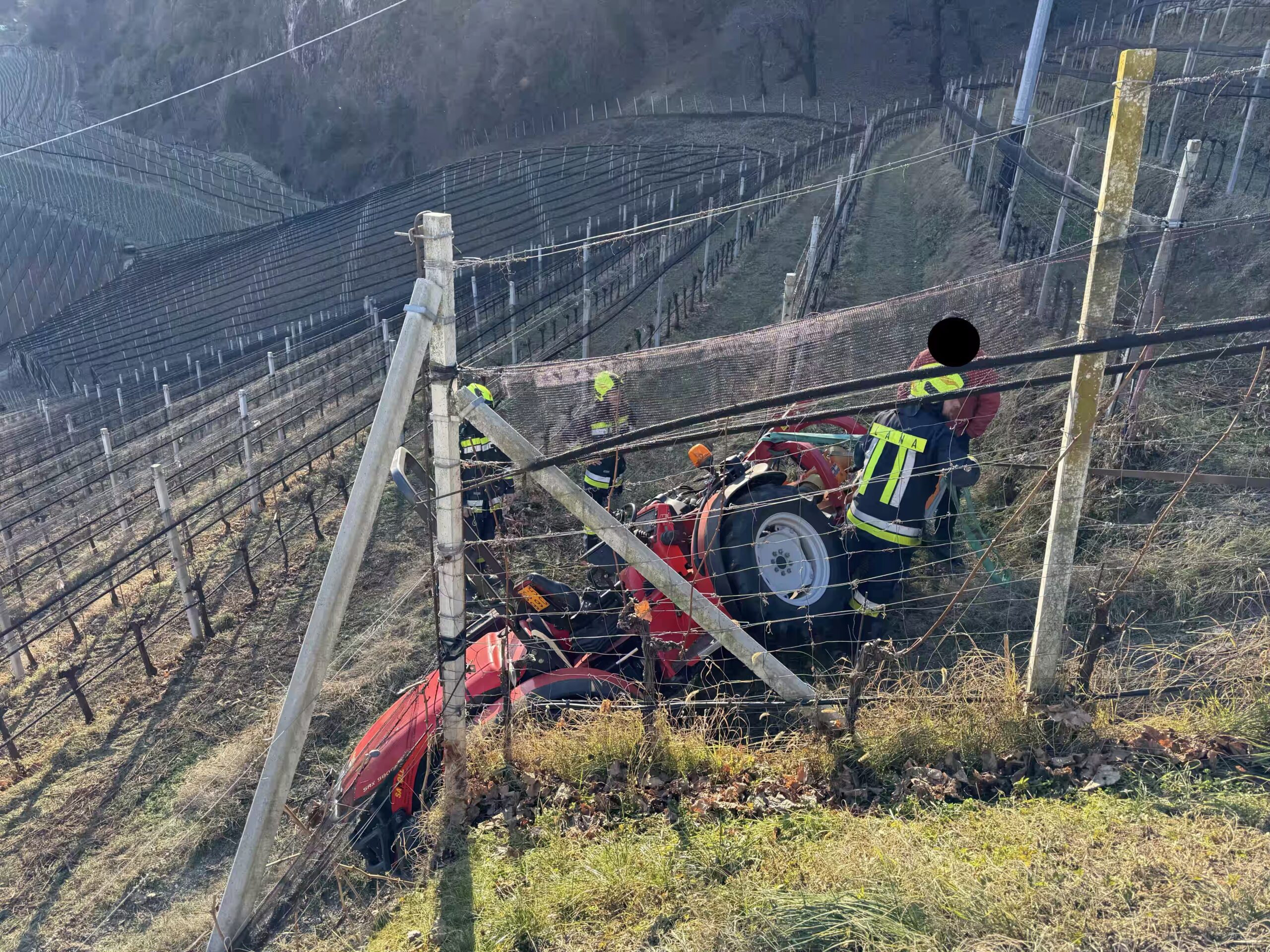 Am Sonntag den 10. Januar 2026 wurde die Feuerwehr Lana von einem Weinbauern zu einem Einsatz nach Unterackpfeif gerufen. Ein mit einem Mulcher bestückter Traktor war in den steilen Weinbergen teilweise umgekippt und drohte abzustürzen. Die Einsatzkräfte bahnten sich den schmalen und steilen Anfahrtsweg nach Unterackpfeif hoch und sicherten den verunglückten Traktor. Mittels Greifzug konnte er wieder auf die Räder gestellt und die Gefahr gebannt werden.