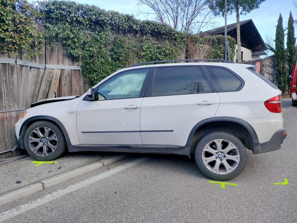 Am Donnerstagnachmittag des 26. Februar 2026 alarmierte die Landesnotrufzentrale die Feuerwehr Lana und das Weiße Kreuz Lana zu einem Verkehrsunfall auf der Gampenpassstraße. Kurz oberhalb von Lana war ein SUV in einer Linkskurve von der Straße abgekommen und gegen die Straßenbegrenzung und einen Grundstückzaun geprallt. Die Fahrzeuglenkerin konnte das Fahrzeug ohne Verletzungen verlassen, der Sachschaden war aber erheblich. Die Feuerwehr Lana sicherte die unübersichtliche Unfallstelle ab, regelte den Verkehr und stellte den Brandschutz sicher. Nach den Unfallermittlungen konnte das Fahrzeug abgeschleppt und die Unfallstelle aufgeräumt werden.
