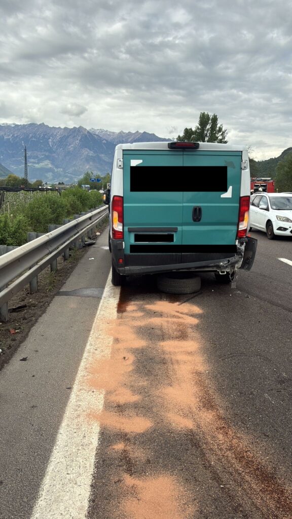 Am Mittwoch den 15. April 2026 wurde die Feuerwehr Lana um 15:15 Uhr zu einem Verkehrsunfall alarmiert. Auf der Südspur der Mebo-Schnellstraße waren kurz nach der Ein- und Ausfahrt Lana zwei Fahrzeuge kollidiert. In der Folge drehte sich eines der Unfallfahrzeuge, ein Lieferwagen und verursachte großen Blechschaden. Unzählige Fahrzeugteile wurden auf die Fahrbahn verstreut und gelangten auch auf die Nordspur. Der Einsatzbereich wurde umgehend abgesichert, die Feuerwehr Gargazon, welche die Norspur sicherte, wurde ebenso alarmiert. Es liefen große Mengen Betriebsflüssigkeiten aus, welche umgehend mit Bindemittel gebunden werden konnten. 1 Person wurde leicht verletzt und von einem Krankenwagen zur Kontrolle in das Meraner Krankenhaus gebracht. Die Straßenpolizei führte die Unfallerhebungen durch, nach dessen Abschluss die Feuerwehr Lana die Bergung des verunfallten Lieferwagen durch den Abschleppdienst unterstützen konnte. Abschließend wurde die Unfallstelle aufgeräumt.