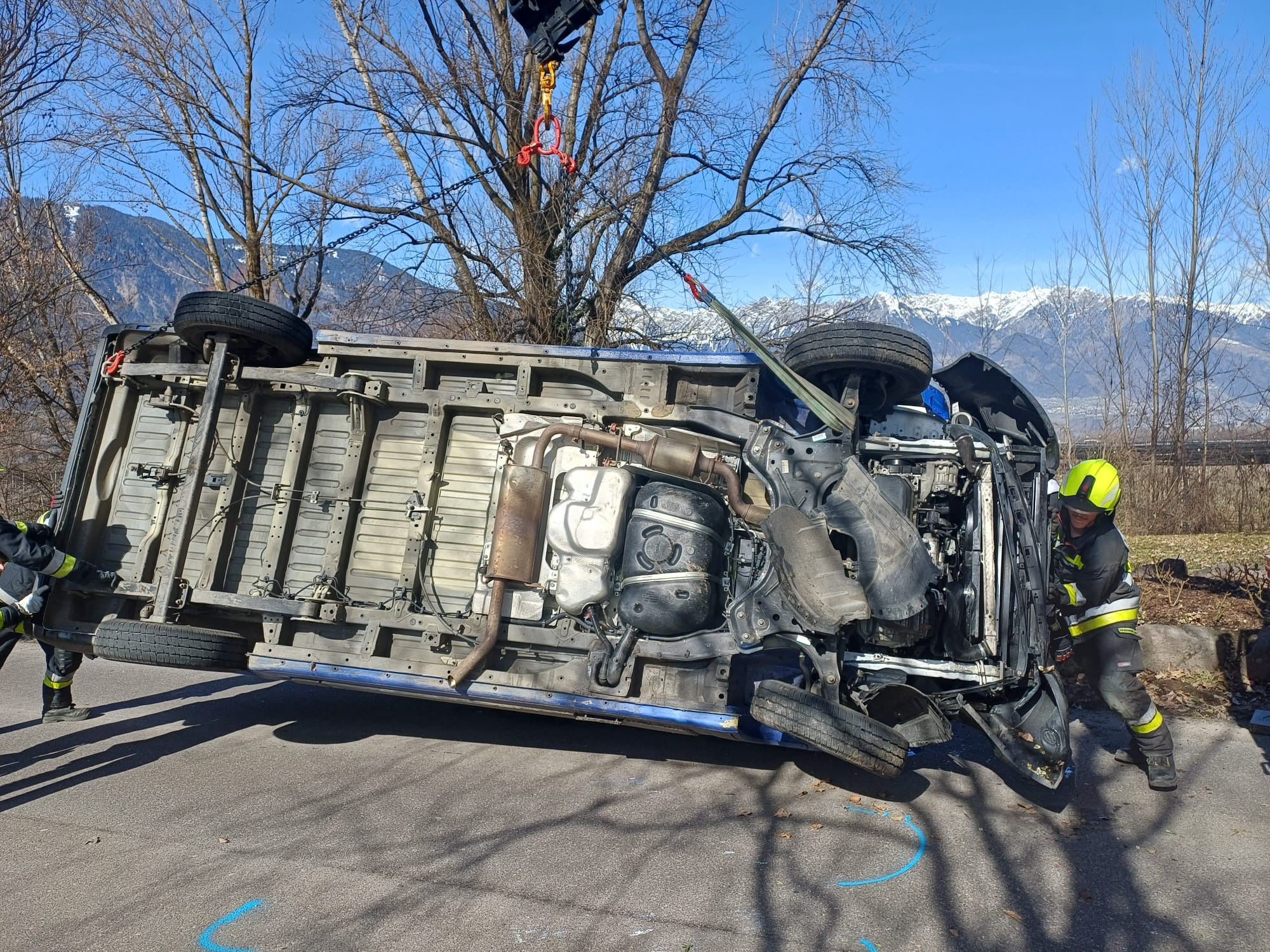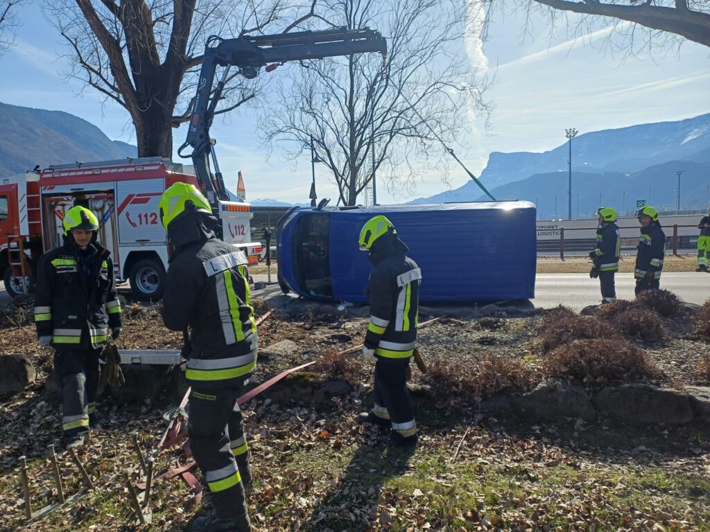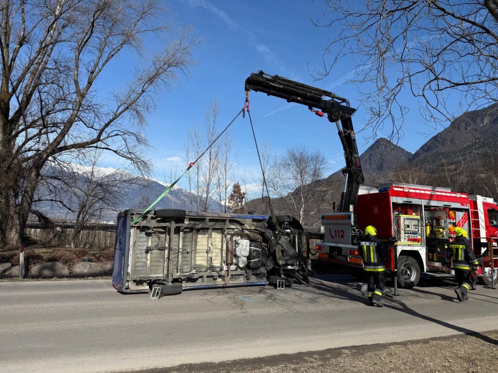 Am Montag den 23.02.2026 wurde die Feuerwehr Lana um kurz vor Mittag zu einem Verkehrsunfall mit einem Lieferwagen in die Boznerstraße in die Nähe des Lido gerufen. Der aus östlicher Richtung kommende Lieferwagen war an der Ortseinfahrt gegen die Begrenzungssteine geprallt und in der Folge seitlich umgekippt. Der Fahrer konnte sich selbst aus dem Fahrzeug befreien und war unverletzt. Die Einsatzkräfte der Feuerwehr Lana sicherten den Straßenabschnitt ab, der Verkehr wurde gemeinsam mit der Ortspolizei Lana entsprechend geregelt und umgeleitet. Der Lieferwagen wurde nach den Unfallermittlungen mittels Kran des Schwerrüstfahrzeuges erneut auf die Räder gestellt und die Unfallstelle aufgeräumt. Nach kurzer Zeit konnte die Straße wieder für den Verkehr freigegeben werden.