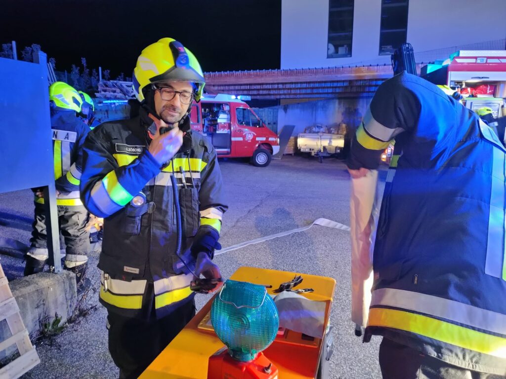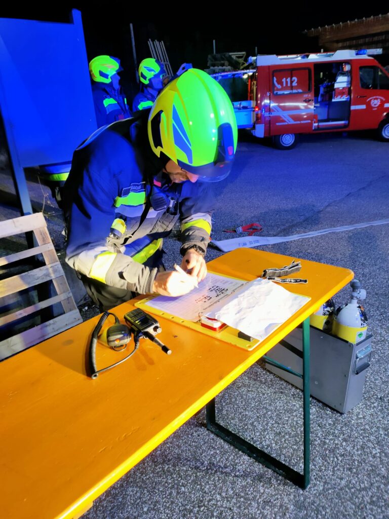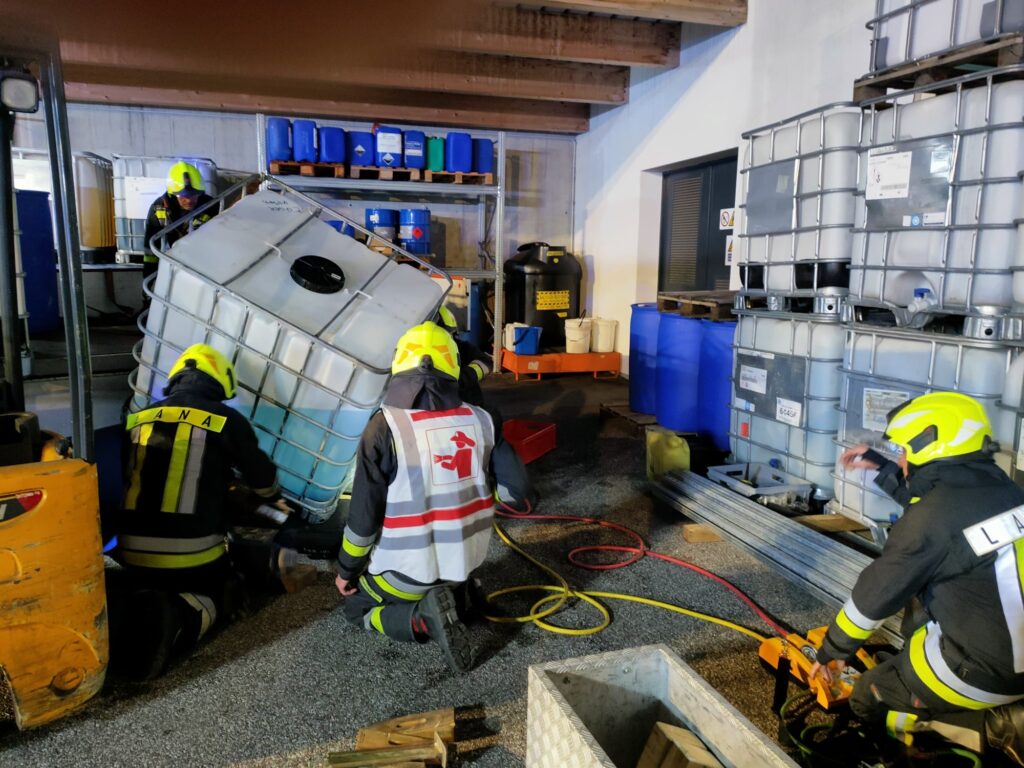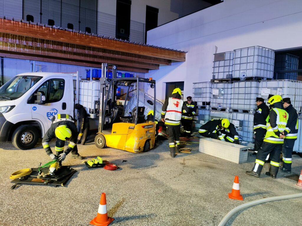 Der 2. Zug der Feuerwehr Lana konnte am Freitag 07.11.25 seine Zugsübung im Lananer Industriegebiet abhalten. Auf dem Betriebsgelände von Egger Klima Kältetechnik mussten die Einsatzkräfte zwei Szenarien abarbeiten. Zum einen gab es ein Brandgeschehen im Materiallager mit anschließender Meldung, dass eine Person darin vermisst wurde und zum anderen war beim Abladen von Glykol in großen ICB-Containern ein Unfall passiert, bei dem eine Person unter dem schweren ICB-Container eingeklemmt worden war, während eine zweite Person mit einem Arm zwischen Container und Transporter feststeckte. Bei diesem zweiten Szenario galt es behutsam vorzugehen, um die Patienten nicht weiter zu verletzen und die schweren Lasten in ihrem Gleichgewicht zu bewerten. Mittels verschiedenen Einsatzmitteln wurden beide Patienten schonend befreit. Zeitgleich lief die Brandbekämpfung im Materiallager, wobei sich ein Atemschutztrupp vorarbeitete. Ein zweiter Trupp ging zur schwierigen Personensuche vor, welche wenig später gefunden und mittels Fluchthaube und Tragetuch gerettet werden konnte.