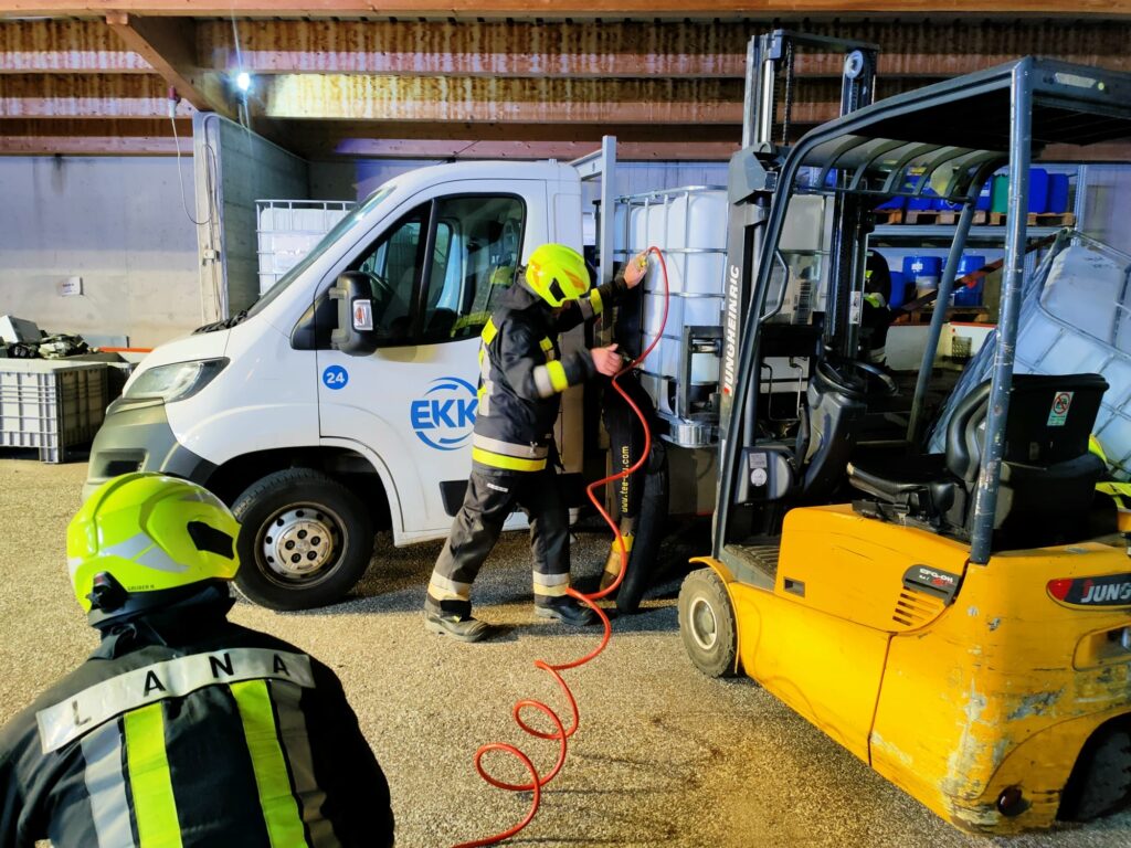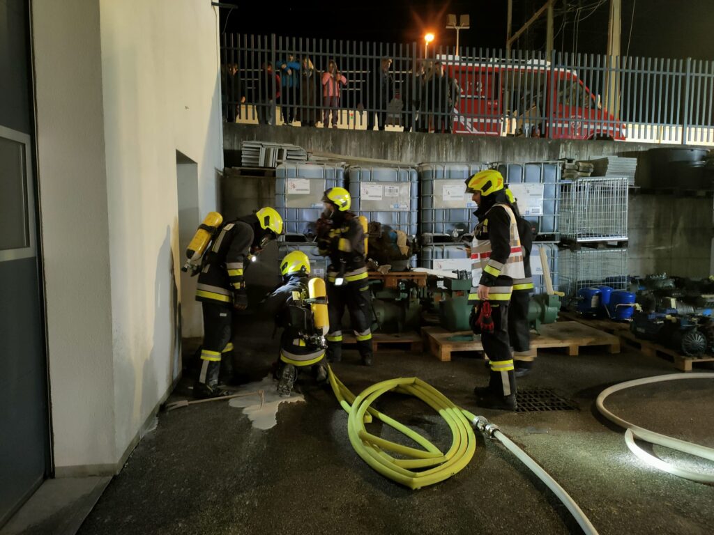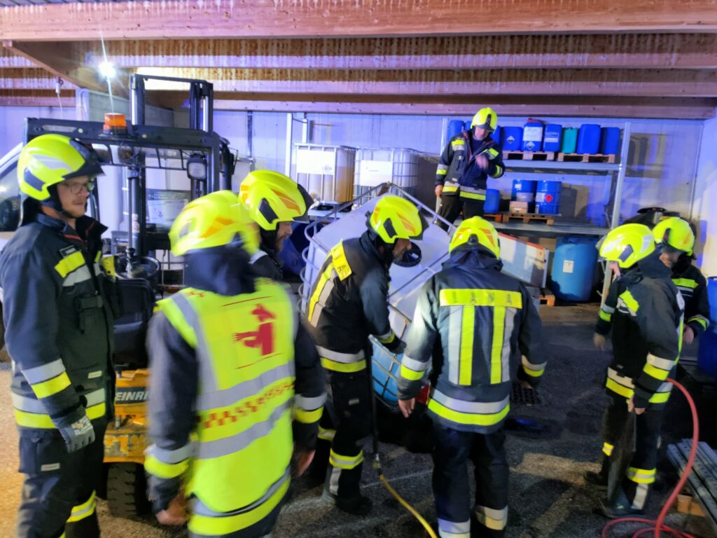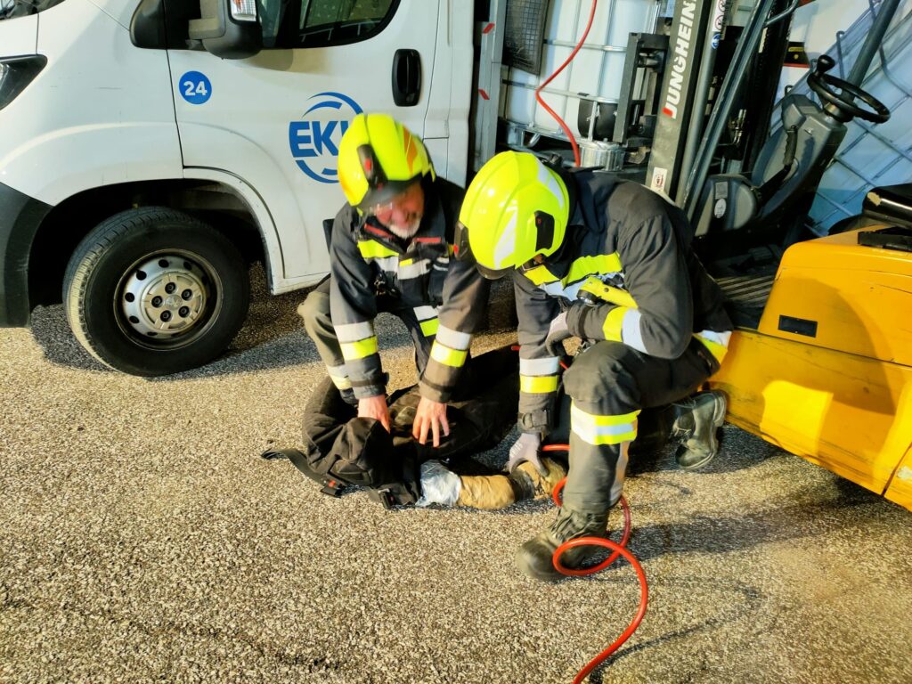 Der 2. Zug der Feuerwehr Lana konnte am Freitag 07.11.25 seine Zugsübung im Lananer Industriegebiet abhalten. Auf dem Betriebsgelände von Egger Klima Kältetechnik mussten die Einsatzkräfte zwei Szenarien abarbeiten. Zum einen gab es ein Brandgeschehen im Materiallager mit anschließender Meldung, dass eine Person darin vermisst wurde und zum anderen war beim Abladen von Glykol in großen ICB-Containern ein Unfall passiert, bei dem eine Person unter dem schweren ICB-Container eingeklemmt worden war, während eine zweite Person mit einem Arm zwischen Container und Transporter feststeckte. Bei diesem zweiten Szenario galt es behutsam vorzugehen, um die Patienten nicht weiter zu verletzen und die schweren Lasten in ihrem Gleichgewicht zu bewerten. Mittels verschiedenen Einsatzmitteln wurden beide Patienten schonend befreit. Zeitgleich lief die Brandbekämpfung im Materiallager, wobei sich ein Atemschutztrupp vorarbeitete. Ein zweiter Trupp ging zur schwierigen Personensuche vor, welche wenig später gefunden und mittels Fluchthaube und Tragetuch gerettet werden konnte.